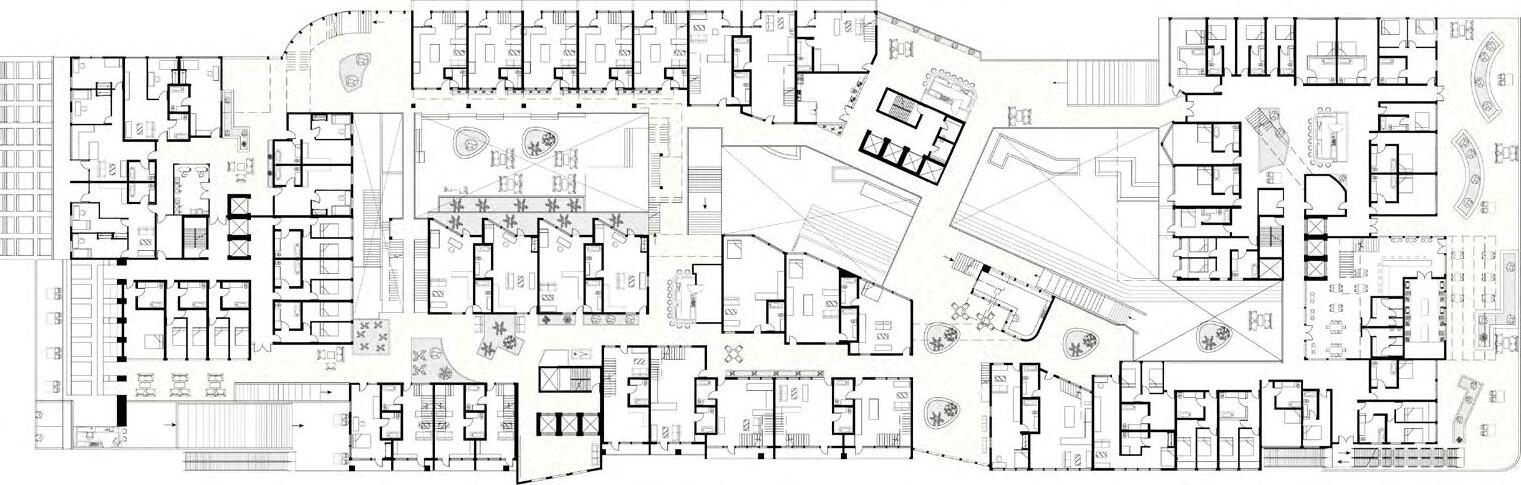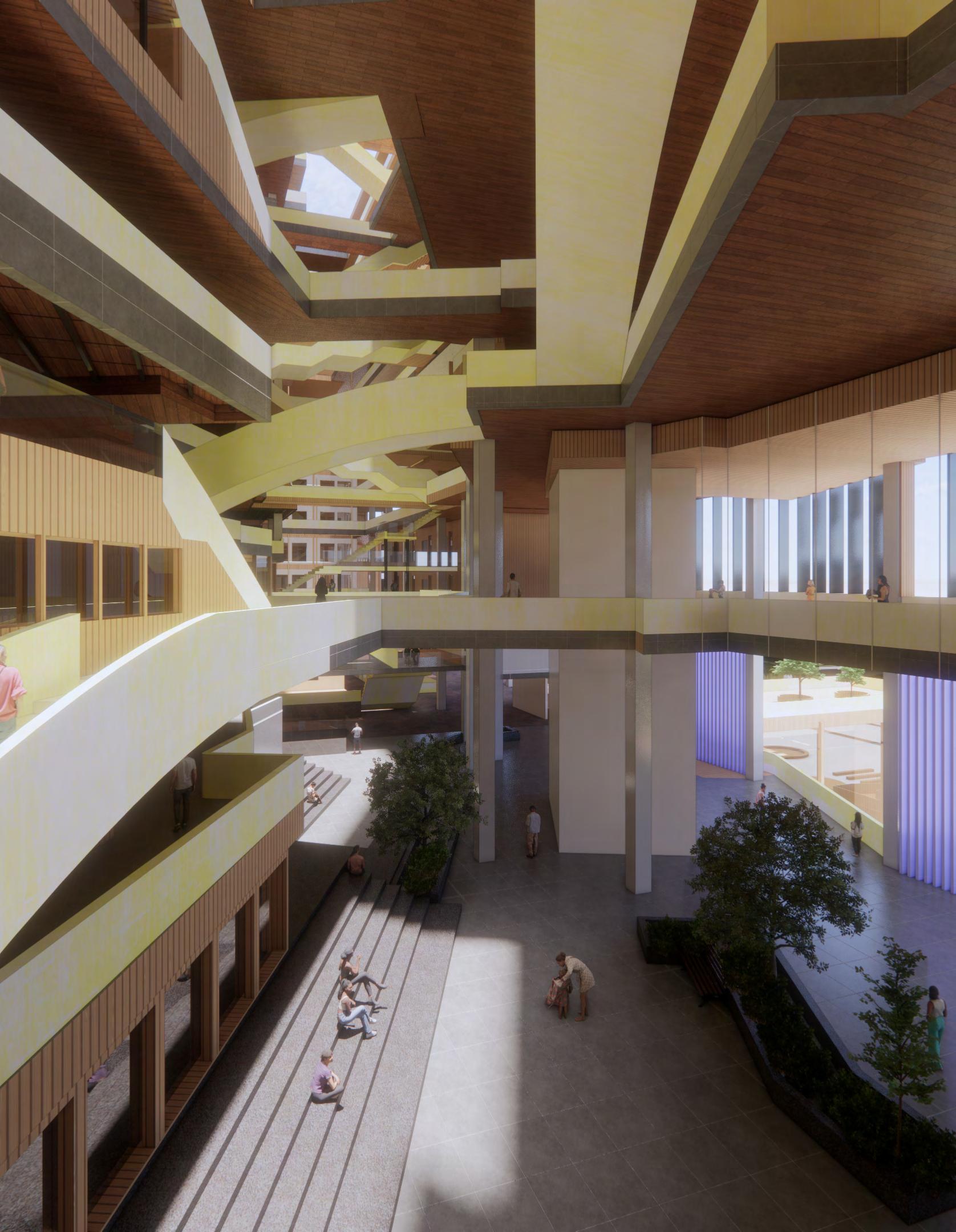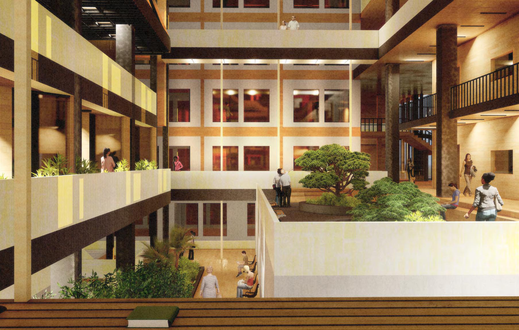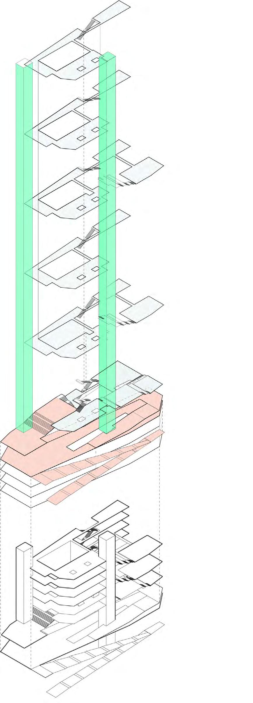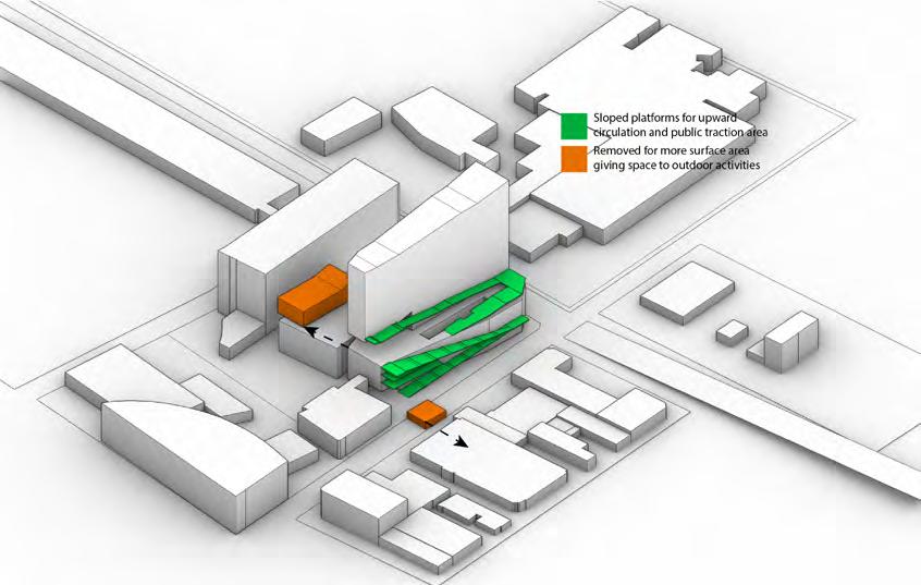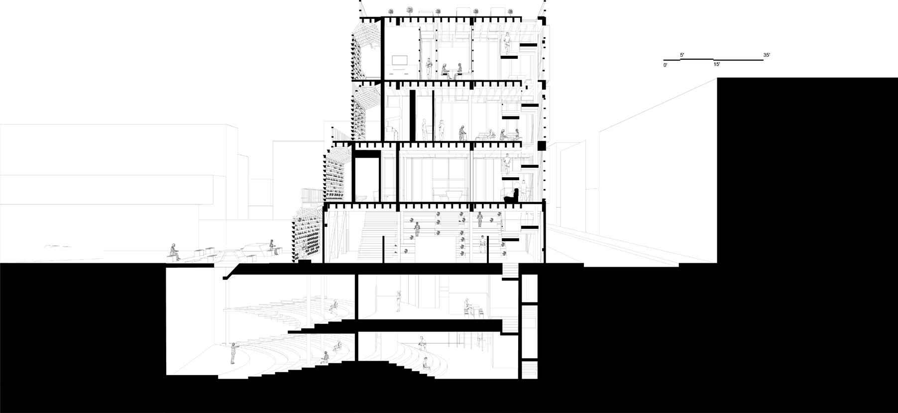 Creating resourceful spaces to encourage community engagements next to a metro station. The programs in each level provides different experience throughout the building. In connecting the different experiences, the similar vegetation experiential circulation is provided on the exterior to tie everything together.