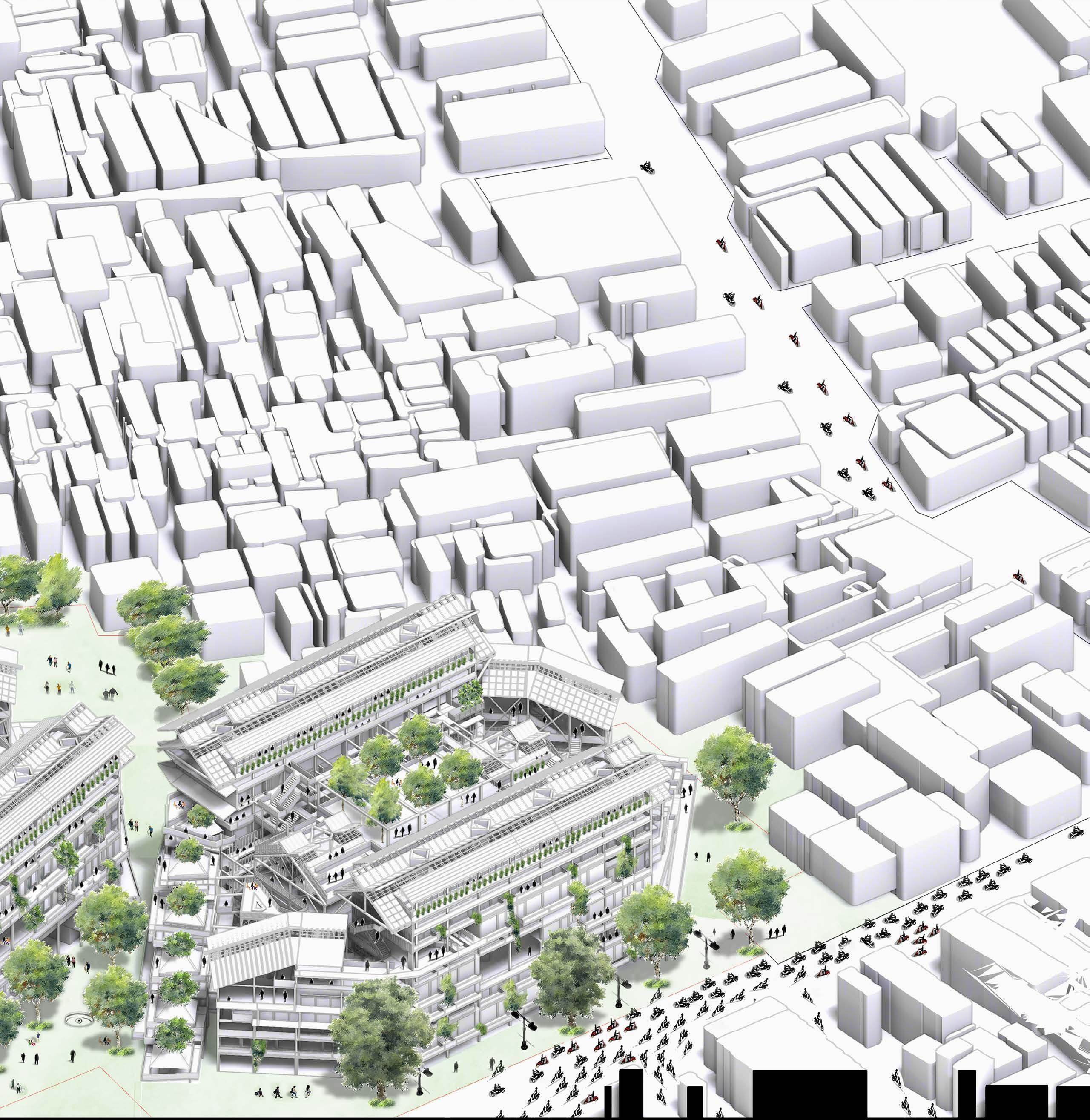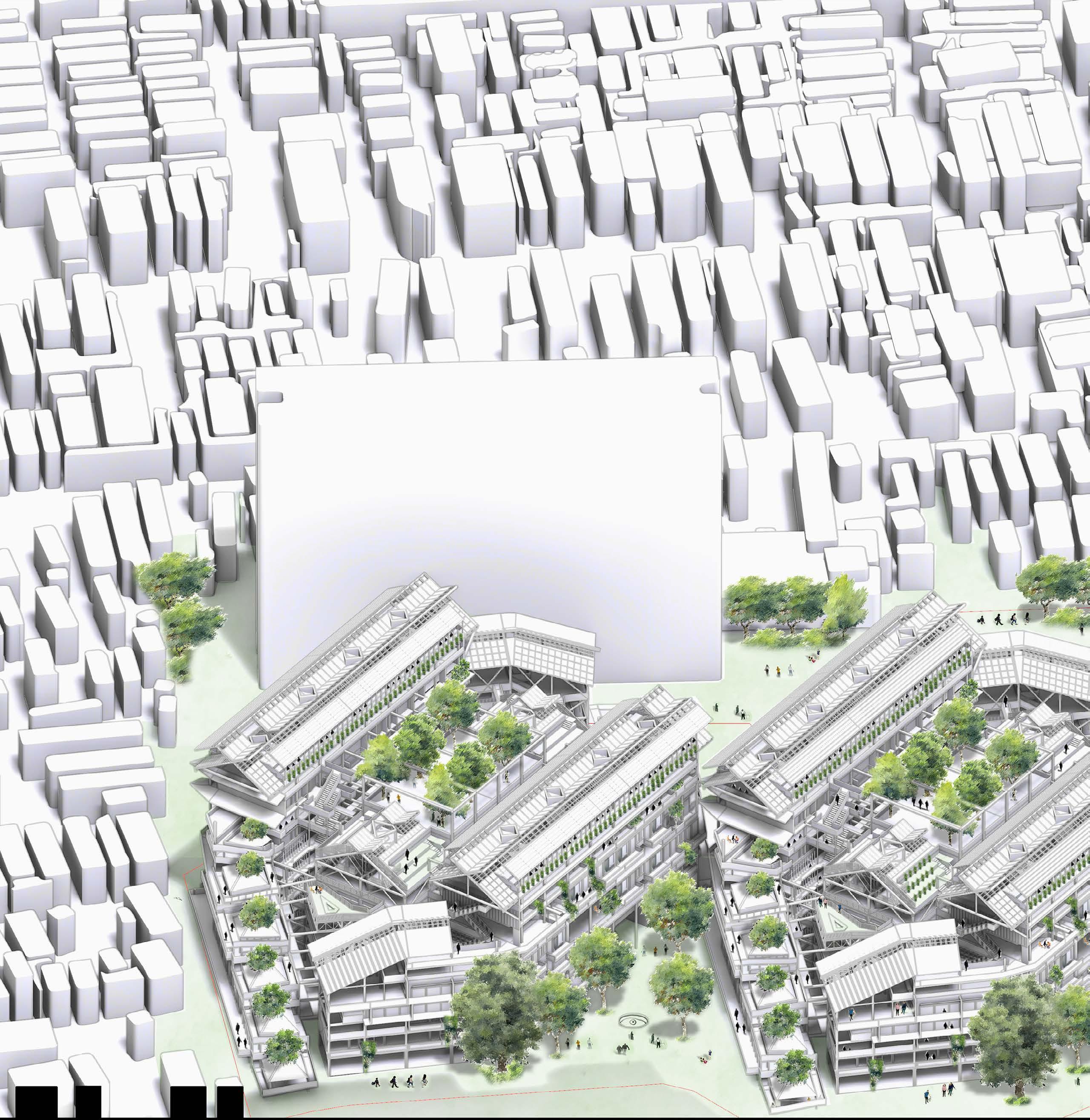 Coverting existing plot of land into three communal residential hubs that prioritizes sustainable models of living for the local residents. Rather than to be gentrified into skyscaper towers that prioritize commercial development with high energy usasge model.