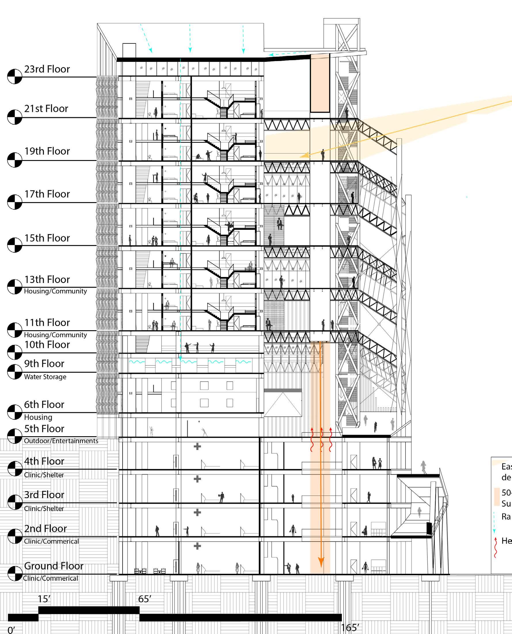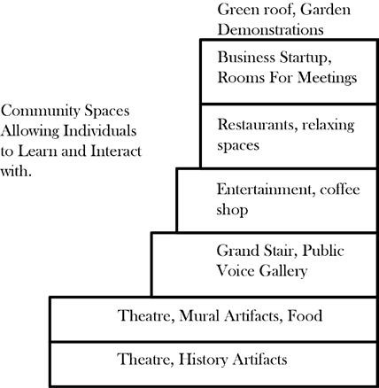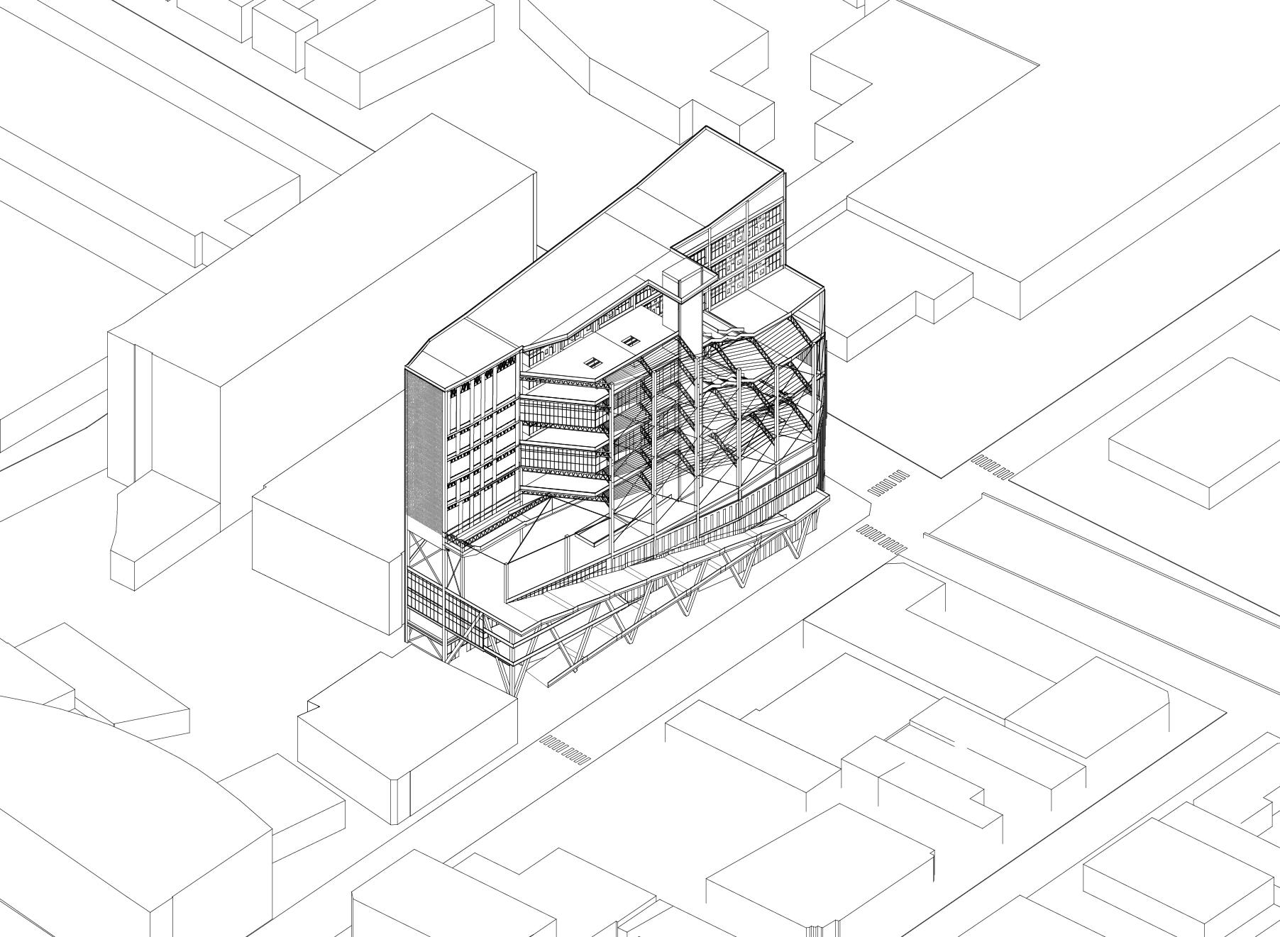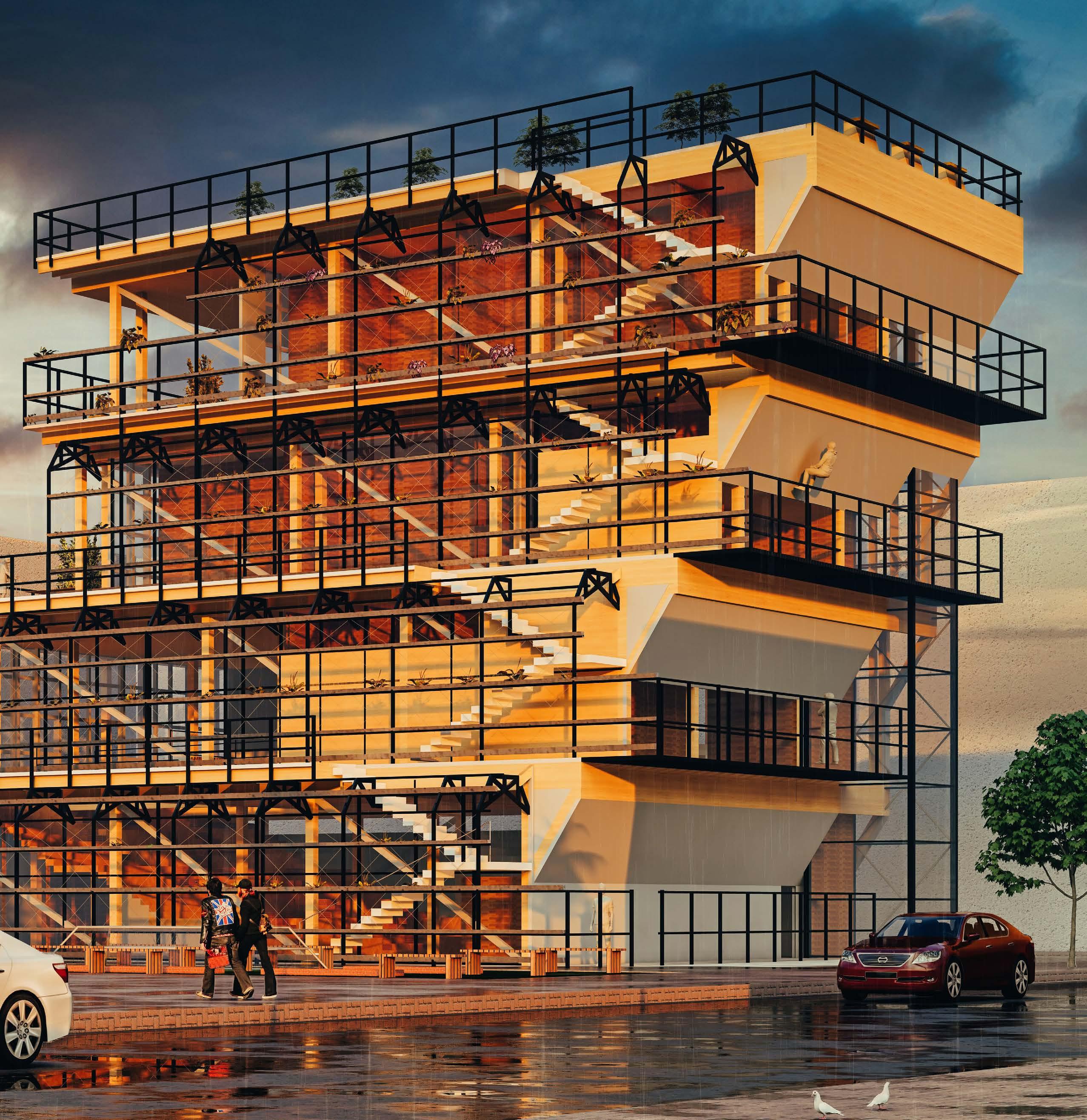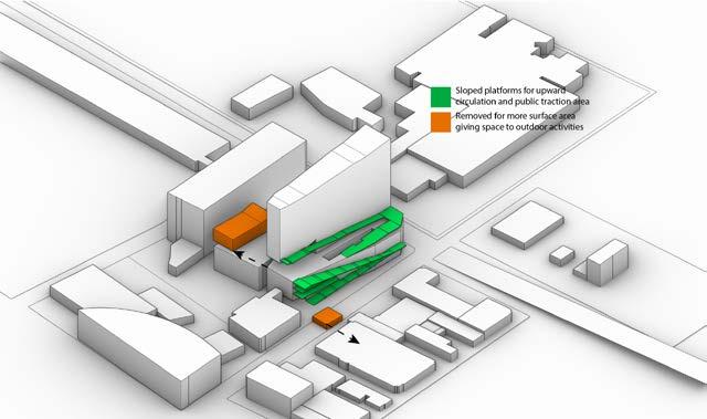 An infrastructure built next to the metro station that provides the connection resources for those passing by or entering the city. Showcasing community cultures through different catergory on different floors.