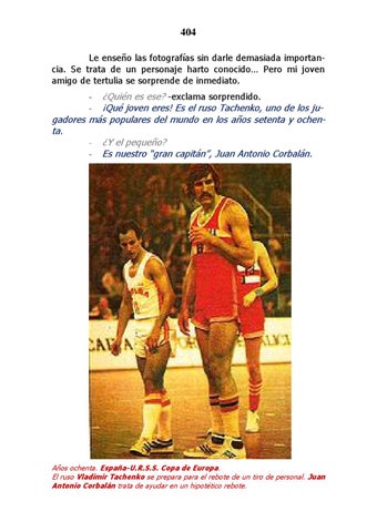 Años ochenta. España-U.R.S.S. Copa de Europa. El ruso Vladimir Tachenko se prepara para el rebote de un tiro de personal. Juan Antonio Corbalán trata de ayudar en un hipotético rebote.