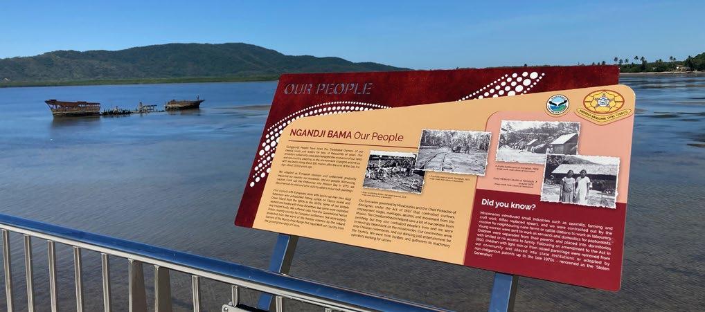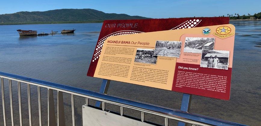 The jetty features a series of interpretation panels telling of the Yarrabah community’s history, traditional stories behind the animal artworks and environmental information. LA3 managed the progression of the interpretation signage working closely with the TMR , local elders, rangers and graphic designers on the series of 10 interpretation signs.