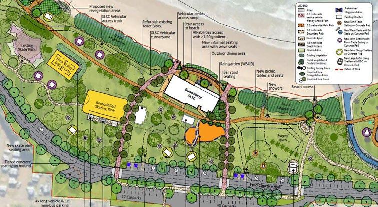LA3 is currently working on a masterplan for the upgrade of Nielson Park which is located on the beachfront at Bundaberg and is a major recreational asset for the Council being a focus point for Bargara and Bundaberg residents and visitors to the region. It is one of the Bundaberg Region’s premier beachside recreation parks providing a variety of activities including a skate bowl, junior and senior play areas as well as providing access to the Nielson Park Bathing Reserve. The park is a popular destination park, frequented by both locals and visitors and is home to the Bargara Park Run and the Bargara Surf Life Saving Club. Currently, Council is undertaking a number of improvement works to activate the northern end of the recreation park through the installation of a formal carpark and shade structures over the adjacent skate bowl to further increase usage of the park.