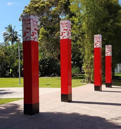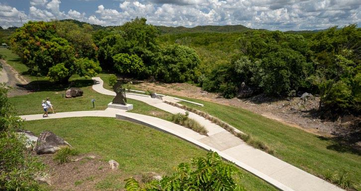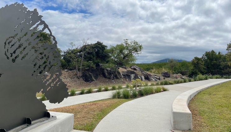 LA3 worked closely with the project Architects, CA Architects and local artist Braham Stevens, Cook Shire Council, and various stakeholders, including the Guugu Yimithirr Elders & Bama-ngay Traditional Custodians of the White & Black Cockatoo Clans, to help bring their nationally significant, ancestral reconciliation story to life in a symbolic empowering way. Along with the boulders the two artworks are the heroes of the project, one of the two clan cockatoo feathers, the other a portrait of the peace making elder. The project, while delayed due to Covid 2020 Restrictions, was designed and delivered within budget for the rescheduled opening in June 2021.