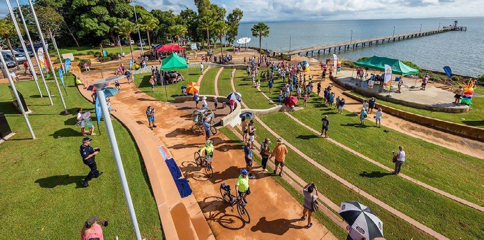 Opened in November 2018, the Cooktown Foreshore project created a new public park on reclaimed land stretching from the existing wharves to the historic Gold Rush era explosives magazine building. New facilities includes a splash play, change rooms & amenities building with a cafe and lookout, fishing platforms, barbecues and picnic shelters and extensive lawns to hold public events.