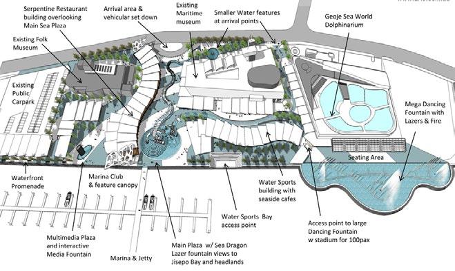 LA3 has designed the Geoje Harbour Town Waterfront in S.Korea. The client was attracted to LA3’s innovative and contemporary solutions including mega water features from China-based Yicity Show and custom designed ‘Multimedia Fountains’ featuring the Korean Sea Dragon folklore story as center piece to a well planned commercial & restaurant district surrounding the existing Maritime Museums, Jisepo Bay commercial district and the Geoje Sea World currently under construction. The design which includes a new Marina Club overlooking a new 180 berth marina with floating Ship Building Museum was also well received by the Mayor of Geoje and locals.