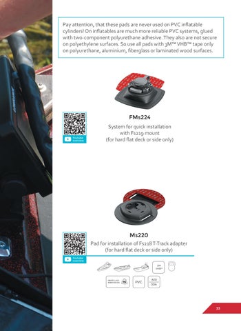 Pay attention, that these pads are never used on PVC inflatable cylinders! On inflatables are much more reliable PVC systems, glued with two-component polyurethane adhesive. They also are not secure on polyethylene surfaces. So use all pads with 3M™ VHB™ tape only on polyurethane, aluminium, fiberglass or laminated wood surfaces.
