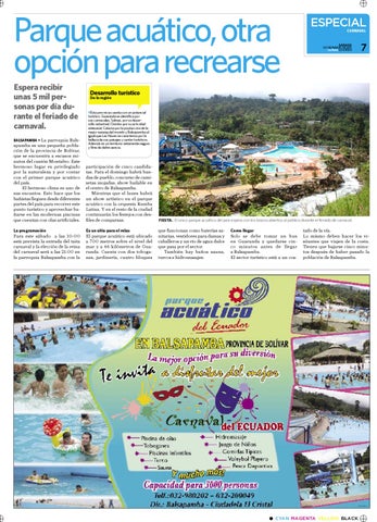 participación de cinco candidatas. Para el domingo habrá bandas de pueblo, concurso de camisetas mojadas, show bailable en el centro de Balsapamba. Mientras que el lunes habrá un show artístico en el parque acuático con la orquesta Rumba Latina. Y en el resto de la ciudad continuarán los festejos con desfiles de comparsas.