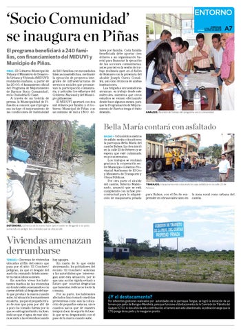 ‘Socio Comunidad’ se inaugura en Piñas El programa beneficiará a 240 familias, con financiamiento del MIDUVI y Municipio de Piñas. PIÑAS ;b =eX_[hde Ckd_Y_fWb Z[ F_ Wi o [b C_d_ij[h_e Z[ :[iWhhe# bbe KhXWde o L_l_[dZW C?:KL? h[Wb_pWh|d cW WdW" W fWhj_h Z[ bWi (&0&&" [b bWdpWc_[dje eÒY_Wb Z[b Fhe]hWcW Z[ C[`ehWc_[dje Z[ 8Whh_ei ÈIeY_e 9eckd_ZWZÉ" [d bW 9_kZWZ[bW ;b 9_id[$ 7 jhWl i Z[ kd Xeb[j d Z[ fh[diW" bW Ckd_Y_fWb_ZWZ Z[ F_# Wi Z_e W YedeY[h" gk[ [b fhe]hW# cW _dYbko[ [b c[`ehWc_[dje Z[ bWi YedZ_Y_ed[i Z[ ^WX_jWb_ZWZ