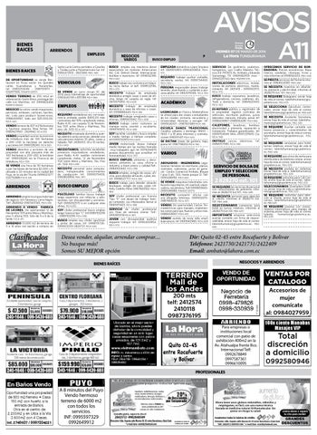 la propiedad, legaliza contratos de vehículos, escrituras públicas, jucios laborales- menores, tránsito, penal. Inf: 0988406967-0989064281. P(D.H.556) CALEFONES, lavadoras, bombas, electricidad y plomería, reparación e instalación. Trabajos garantizados. Inf: 0999704546 Mov.-0997237600 Cla. P(D.H. 549)