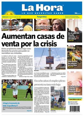 cios de las propiedades para que puedan salir del mercado. Este es el caso de Juan y su esposa, quienes este año enfrentaron una pérdida económica que los dejó en la ruina. Deudas por cancelar y las bajas ventas en su negocio les obligó a vender su casa en un valor muy inferior al que adquirieron. Sánchez dijo que en el 2015 en cada trimestre se vendía al menos dos casas, pero que este año se comercializó ese número de viviendas en seis meses. Es decir hay una disminución del 50% de las ventas. Además la baja de las ventas