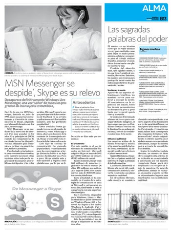 activos y esperan que el número crezca a los usuarios que migran a partir de su servicio de mensajería tradicional. Messenger, por su parte, cuenta con 19 millones de usuarios activos, de acuerdo con ComScore. Los que no tienen cuenta de Skype pueden utilizar una de Microsoft e importar sus contactos.