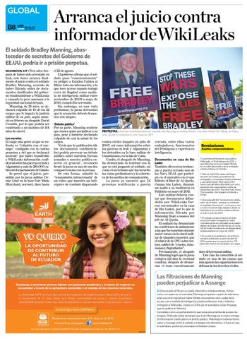 el 23 de agosto. El gobierno afirma que el soldado puso “conscientemente” en peligro a Estados Unidos al filtrar toda esa información, a la que tuvo acceso cuando trabajó cerca de Bagdad como analista de inteligencia militar entre noviembre de 2009 a mayo de 2010, cuando fue arrestado. Sin embargo, en una vista preliminar, la jueza determinó que la acusación deberá demostrar este alegato. ‘Debate público’