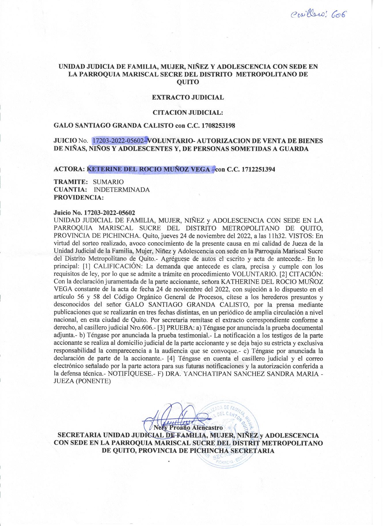 UNIDAD JUDICIAL CIVIL CON SEDE EN EL DISTRITO METROPOLITANO DE QUITO EXTRACTO JUDICIAL