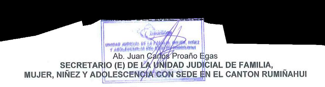 REPUBLICA DEL ECUADOR UNIDAD JUDICIAL DE LA FAMILIA, MUJER, NIÑEZ Y ADOLESCENCIA CON SEDE EN EL CANTÓN RUMIÑAHUI