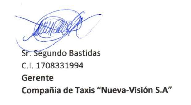 Convoco a todos los socios y accionistas de la Compañía de Taxis Nueva-Visión S.A a la ASAMBLEA GENERAL ORDINARIA que tendrá lugar el día martes 23 de abril 2024 a las 10:00, en la sede de la compañía ubicada en Sabanilla y Melchor Toaza esquina, con el objeto de conocer y resolver los siguientes puntos del orden del día: