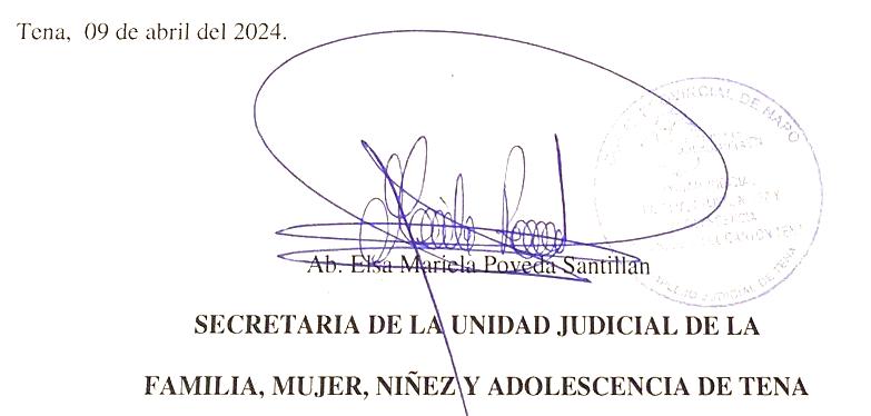 UNIDAD JUDICIAL DE FAMILIA, MUJER, NIÑEZ Y ADOLESCENCIA CON SEDE EN EL CANTÓN TENA. Tena, martes 9 de abril del 2024, a las 17h13.