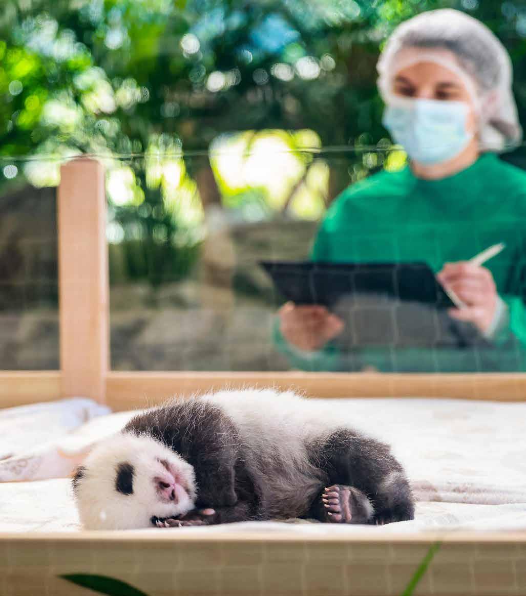 Un cuidador inspecciona a uno de los dos pandas gemelos recién nacidos en un recinto del Zoo de Berlín, Alemania. Los cachorros de panda nacieron el 22 de agosto de 2024. EFE