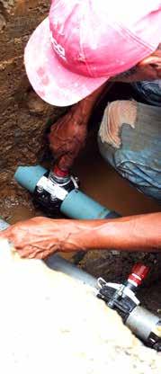 LABORES. Personal técnico municipal realiza trabajos de reparación en la transmisión sur para restablecer el servicio de agua potable en los barrios afectados.