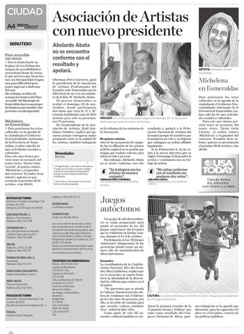 resultado y apelará a la Federación Nacional de Artistas del Ecuador porque él considera que le anularon un voto y no dejaron que sufragara un artista afiliado legalmente. Si la Federación le da la razón a la nueva directiva que se eligió el domingo él depondrá la acción y continuaría con su trabajo de artista.