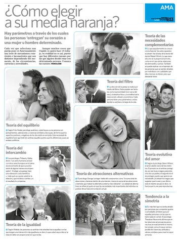 res como la proximidad (vivir cerca del otro), el atractivo físico y la similitud de la clase social, cultural y económica. Cada persona tiene unos parámetros y estos tienden a cambiar a lo largo de la vida.