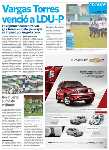 Vargas Torres venció a LDU-P En el primer encuentro Vargas Torres empató, pero ayer se impuso por un gol a cero. El objetivo lo tenían claro los jugadores del equipo esmeraldeño, Vargas Torres, que ayer, a las 13:00, se enfrentaron en el estadio ‘Folke Anderson’ de Esmeraldas a Liga Deportiva Universitaria de Portoviejo (LDU-P) de Manabí, como era lograr los tres puntos en casa. El objetivo se cumplió gracias al gol marcado por el centro delantero Estuardo Quiñónez, a los 18 minutos del primer tiempo, marcador que se mantuvo hasta el final del encuentro. Este resultado mejora la posición del equipo, que en la fecha anterior se enfrentó en el mismo reducto ante Águilas de Santo Domingo con el empató a cero goles, no así LDU-P que venía de ganarle a Venecia de la provincia de Los Ríos, en el estadio ‘Reales Tamarindos’.