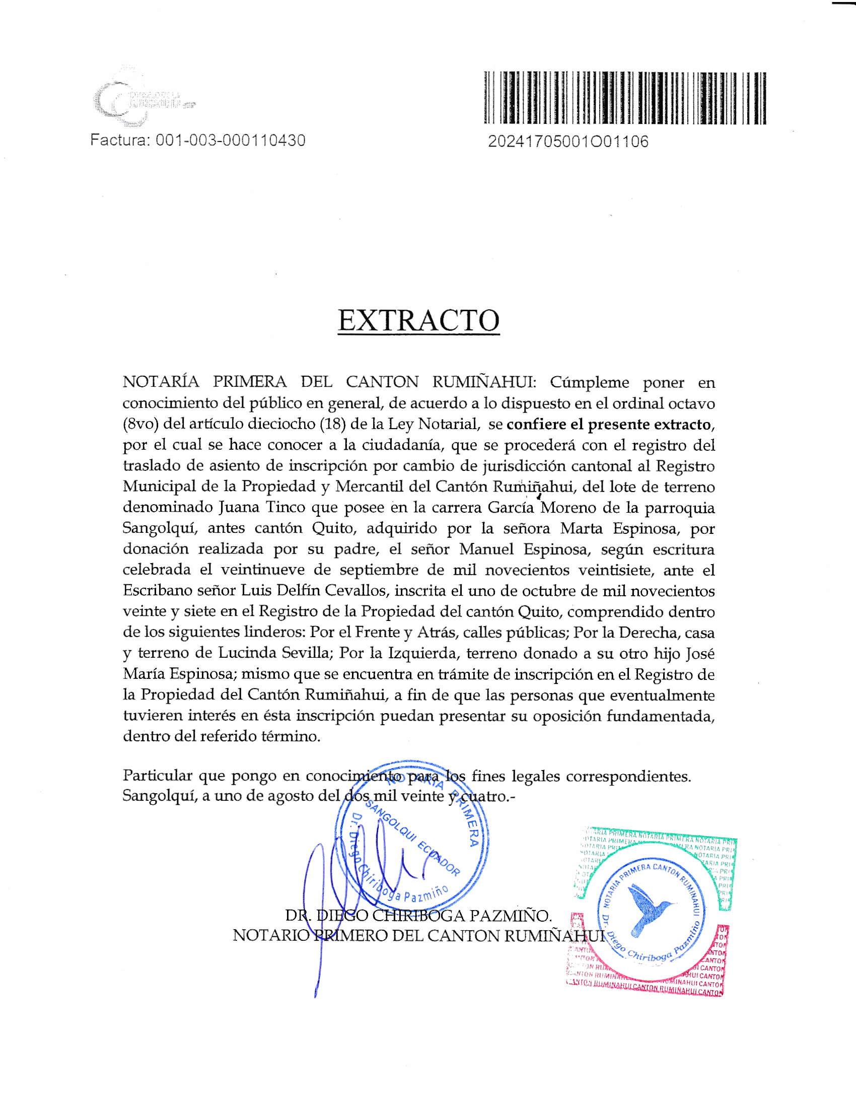 Extracto de publicación De acuerdo a lo establecido en el CAPÍTULO III, Artículo 10, numeral 6, de LA ORDENANZA