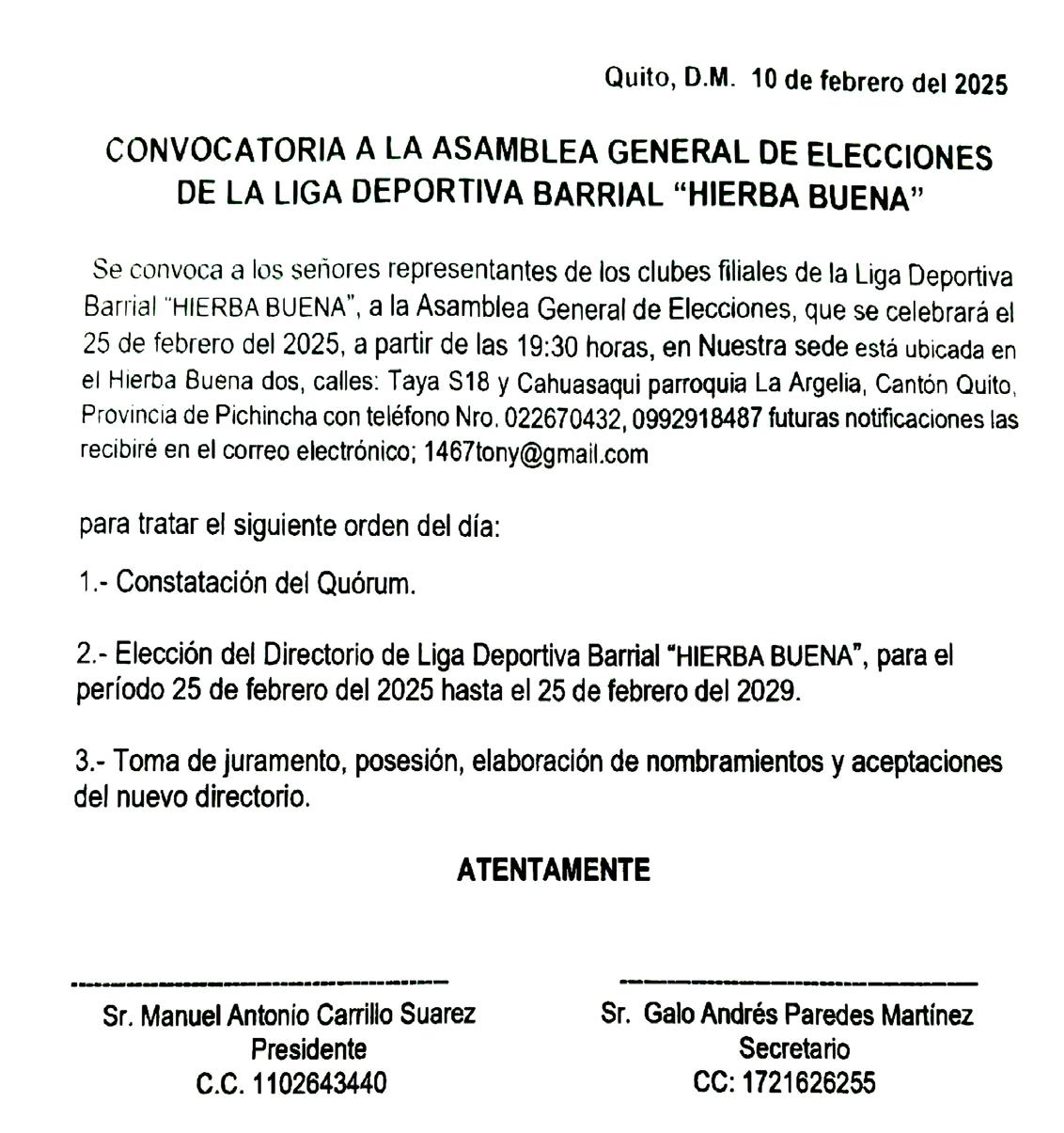 To this effect, said authorizations to be effective as of the 15th day of October 2024 Luisa Fernanda Amador Burbano is authorized to sign any and all public and/or private documents necessary for the execution of this mandate, in the terms and conditions that is considered convenient. The Attorney-in-fact is also authorized to make any filings of documents before any Public Notary in the Subject Country.