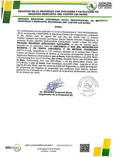 “Habiéndose puesto en nuestro conocimiento el extravío del certificado de depósito a plazo N° 16801DPP000020-4 emitido por el Banco Bolivariano C.A. con vencimiento 02/03/2025”.
