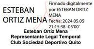 De conformidad con lo establecido en el Estatuto de Club Sociedad Deportivo Quito en vigencia; por medio de la presente se CONVOCA a las y los Socios del Club Sociedad Deportivo Quito, a la Asamblea General Extraordinaria que se llevará a cabo el día jueves 23 de mayo de 2024 en la sede del Club, ubicado en la Av. Clemente Yerovi y Av. Diego de Vásquez, a las 18h00, a efectos de tratar el siguiente orden del día: