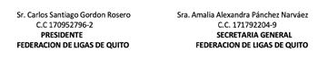 González Burbano Hillary Yara, Zabala Nazareno Lennin Didier, Castillo Acosta Gregori Josué, Barros Hernández Cristhopher Gabriel, Arroyo Mina Sheiner Joandry, Hurtado Arroyo Joseph Adrián, Vernaza Montaño Joseph Jasmany, Ayovi Cabeza Wladimir José, Lugo Lugo John Piero, Eguez Coronel Juan Isaac y Nazareno Caicedo Luis Mario.