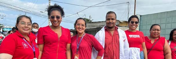 sas instituciones públicas, unidades educativas, ONGs, así como al personal médico, enfermería y administrativo del Hospital Delfina Torres de Concha (DTC), todos vestidos con camisetas rojas, el color simbólico de la lucha contra el VIH. Las consignas de “No a la discriminación” resonaron en las calles, buscando motivar a la comunidad a realizarse pruebas y a adoptar métodos de prevención contra el VIH y otras enfermedades de transmisión sexual.