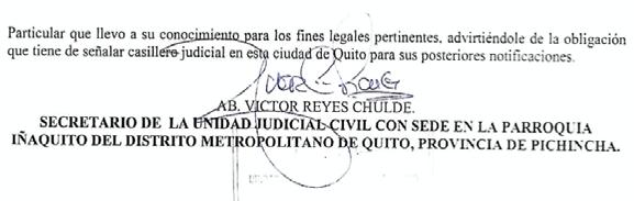 UNIDAD JUDICIAL CIVIL CON SEDE EN LA PARROQUIA IÑAQUITO DEL DISTRITO METROPOLITANO DE QUITO, PROVINCIA DE PICHINCHA.