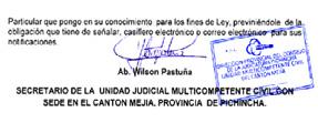 UNIDAD JUDICIAL MULTICOMPETENTE CIVIL CON SEDE EN EL CANTON MEJIA, PROVINCIA DE PICHINCHA.