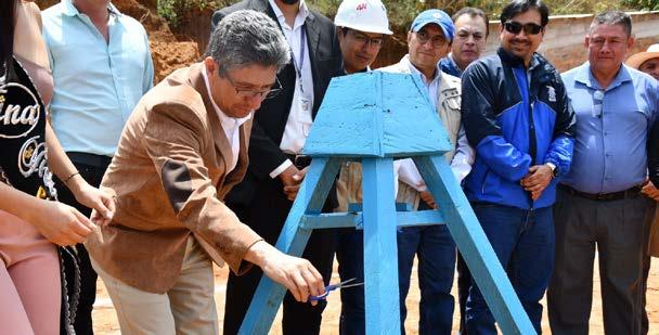 PROYECTO. Autoridades de la EERSSA y representantes de Pindal y Puyango colocan la primera piedra de las nuevas agencias, que beneficiarán a más de 9,400 usuarios en ambas localidades.