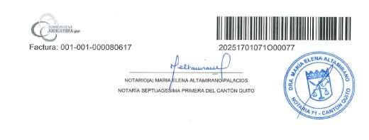 Pongo en conocimiento del público en general que, mediante escritura pública otorgada ante la Doctora María Elena Altamirano Palacios, Notaria Septuagésima Primera del Cantón Quito, el día seis de febrero del dos mil veinte y cinco, los cónyuges señores