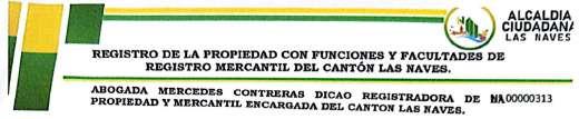 de conformidad con los artículos 4 y 5 de la Resolución N.0 003-NGDINARDAP-2012, se procedió a REPONER, la Escritura Pública de Compraventa, celebrada el día martes once de agosto del año dos mil veinte ante el Notario Público primero del Cantón Las Naves, Doctor Wilson Toscano Tasigchana, la señorita ELISA JUDITH QUILLIGANA GAVILANEZ, vende a favor del señor WILLIAM WILFRIDO QUILLIGANA GAVILANEZ, el lote de terreno antes descrito de la extensión total dc CINCUENTA Y DOS MIL SETECIENTOS SETENTA Y UN PUNTO CINCUENTA Y UN METROS CUADRADOS (52771.51m2), equivalente a 7.47 cuadras, ubicado en el recinto Nave Chico, cantón las Naves, Provincia de Bolívar se encuentra circunscrito dentro de los siguientes linderos y dimensiones: por el Norte, Galo Gavilánez, con (242.76m); y Curimining S.A, con (118.57m); por el Sur, Gonzalo Tocta, con (34.09m); por el Este, Curimining. S.A. con (254.83m); y vio las Naves-Nave Chico, con (173,85m); y, por el Oeste, Galo Gavilánez, con (327.19m). -Inscrita el 20 de agosto del año 2020, bajo los números (183) del Repertorio; y, (100) del Registro de propiedad del Registro de propiedad, que pudieran tener interés, pueden oponerse en el término de 15 días a partir de la presente publicación. Las Naves 04 de febrero del 2025.