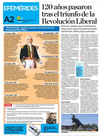 El liberalismo tuvo un desarrollo aunque luego sus diferencias ascendente en América Latina –Alfaro intentó infructuosadesde mediados del siglo XIX y mente forzarlo a renunciar sin Ecuador no fue una excepción, percatarse quizás de que Plaza tanto, que el 5 de junio de 1895 tenía prestigio como defensor de un pronunciamiento popular las tesis liberales y buen negoque tuvo lugar en Guayaquil ciador– los llevaron a conflictos proclamó que las ideas de este irremediables entre ellos que, a movimiento estaban más “en la corta, formalizaron la división armonía con la civilización y el del liberalismo. Plaza terminó su mandato e progreso modernos”. La sublevación condujo a des- impuso en 1905 la candidatura y conocer al gobierno de Vicente gobierno de Lizardo García, resLucio Salazar y al nombramien- paldado por el poder económico to de Eloy Alfaro como Jefe Su- pero con una administración dépremo de la República y General bil, por lo que fue derrocado por una revuela militar de Alfaro en en Jefe del Ejército. Entre los cambios que la Re- el mismo año. El Viejo Luchador volución Liberal trajo al país llegaba a dictador en medio de la lucha entre fracciones liestuvo la implementación berales y el apoyo de otros del laicismo, corriente del grupos. pensamiento influenciada El DATO Alfaro gobernó entre por la Revolución france1895-1901 y 1906-1911, pesa que, sin condenar la La Revolución en ríodo este último en que, existencia de los valores Liberal Ecuador se insreligiosos, establecía la se- cribió en el con- a pesar de la terminación de una del ferrocarril trasandino paración entre el Estado y texto especie de ‘Internacional marcó el debilitamiento las Iglesias u organizaciodel liberalismo’ del liberalismo con el asenes religiosas. en América sinato del líder. Desde ese momento, Latina. al abolirse el catolicismo como religión estatal, se produ- siguen los liberales jo el robustecimiento del poder Los liberales, no obstante, gocentral, la libertad de cultos fue bernarían unos años más. Enpermitida, los bienes eclesiásticos tre 1912 y 1925 tomaría auge el se confiscaron, la enseñanza laica estado oligárquico liberal y se se hizo obligatoria y se legalizó el turnaban en el poder los grupos divorcio. plutocráticos y los placistas. Los liberales radicales ecuaA la par, en el marco de la torianos proponían suprimir oposición liberal-conservadora, los conventos y monasterios, surgía una nueva corriente ideoexpulsar al clero extranjero, dar lógica: el socialismo. la libertad a los indios, organizar La obra material del liberalisun Ejército fuerte y bien pagado mo fue grande. Gracias a la Revoy construir un ferrocarril que lución Liberal, llamada también uniera la Sierra con la Costa. guerra civil, se introdujeron los cambios que modernizarían al atrasado Ecuador, por sobre la ceel timón de alfaro Alfaro tomó el mando de Ecua- rrada oposición terrateniente, del dor luego de la caída de Lucio conservadorismo y la Iglesia. No Salazar y ordenó redactar la obstante, el anunciado reformisConstitución de 1897 que lo de- mo social no pudo afirmarse, pues claró presidente constitucional. no se pudo romper el predominio Fue sucedido por su propio coi- ideológico del clero y del latifundeario Leónidas Plaza Gutiérrez, dismo en la Sierra. (AGC-PT)