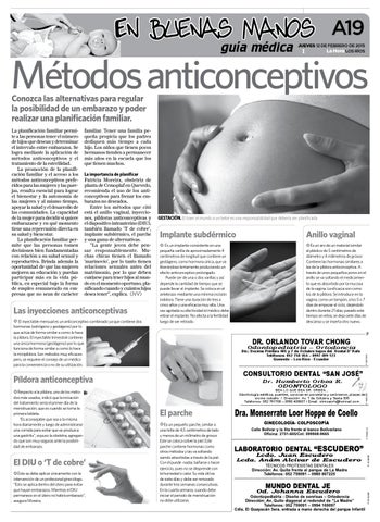 Métodos anticonceptivos Conozca las alternativas para regular la posibilidad de un embarazo y poder realizar una planificación familiar.