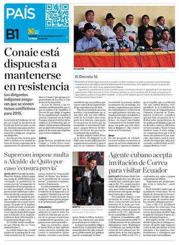 Conaie está dispuesta a mantenerse en resistencia Los dirigentes indígenas aseguran que se vienen temas conflictivos para 2015.