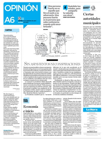 www.lahora.com.ec Esta sección representa el pensamiento de los editores. Los escritos de los colaboradores sólo comprometen a sus autores y no reflejan necesariamente el pensamiento del periódico.