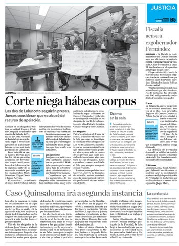 Estupor en los abogados y tris- interpuesto dos veces la misma teza en Abigaíl Heras y Cristi- acción por los mismos hechos, na Campaña se evidenció ayer acto u omisión y en contra de las mismas personas, por cuando la Sala de lo Pelo tanto se expone oficiar nal de la Corte Nacional al Consejo de la Judicatude Justicia leyó su resolución: negar el recurso de y 20hora minutos le ra para que se investigue apelación de la acción de tomó a la Sala la conducta de los abogallegar a una dos que han tenido esa hábeas corpus solicitada resolución. actuación”. por las dos de Luluncoto. Pero, más allá de que se negó la libertad para los argumentos El Dato las dos chicas que están Los jueces se refieren a acusadas de terrorisotra apelación similar Heras y mo, lo que causó asom- Abigaíl que se presentó el 19 de Cristina bro a los defensores fue Campaña mani- julio pasado, que la conofestaron que la segunda parte de la evaluarán si ció la Sala de lo Conteno no sentencia emitida por mantienen cioso Administrativo y la huelga de los magistrados Merk hambre. que también fue negada. Benavides, Edgar Flores Consideran que ni y Káiser Arévalo. los argumentos de los El texto dice: “… se evidencia abogados ni las circunstancias el abuso del derecho al haberse han cambiado entre una y otra