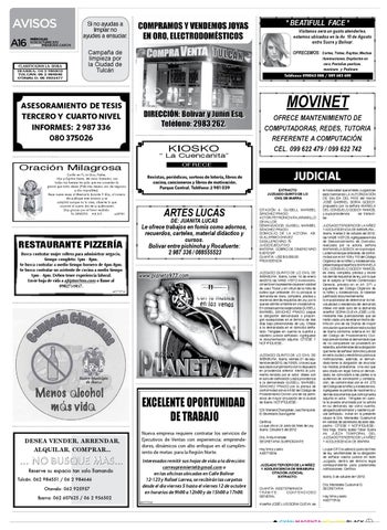 EXCELENTE OPORTUNIDAD DE TRABAJO ... NO BUSQUE MAS... Reserve su espacio tan solo llamando Tulcán: 062 984551 / 06 2 984646 Otavalo: 062 925957 Ibarra: 062 607625 / 06 2 956502
