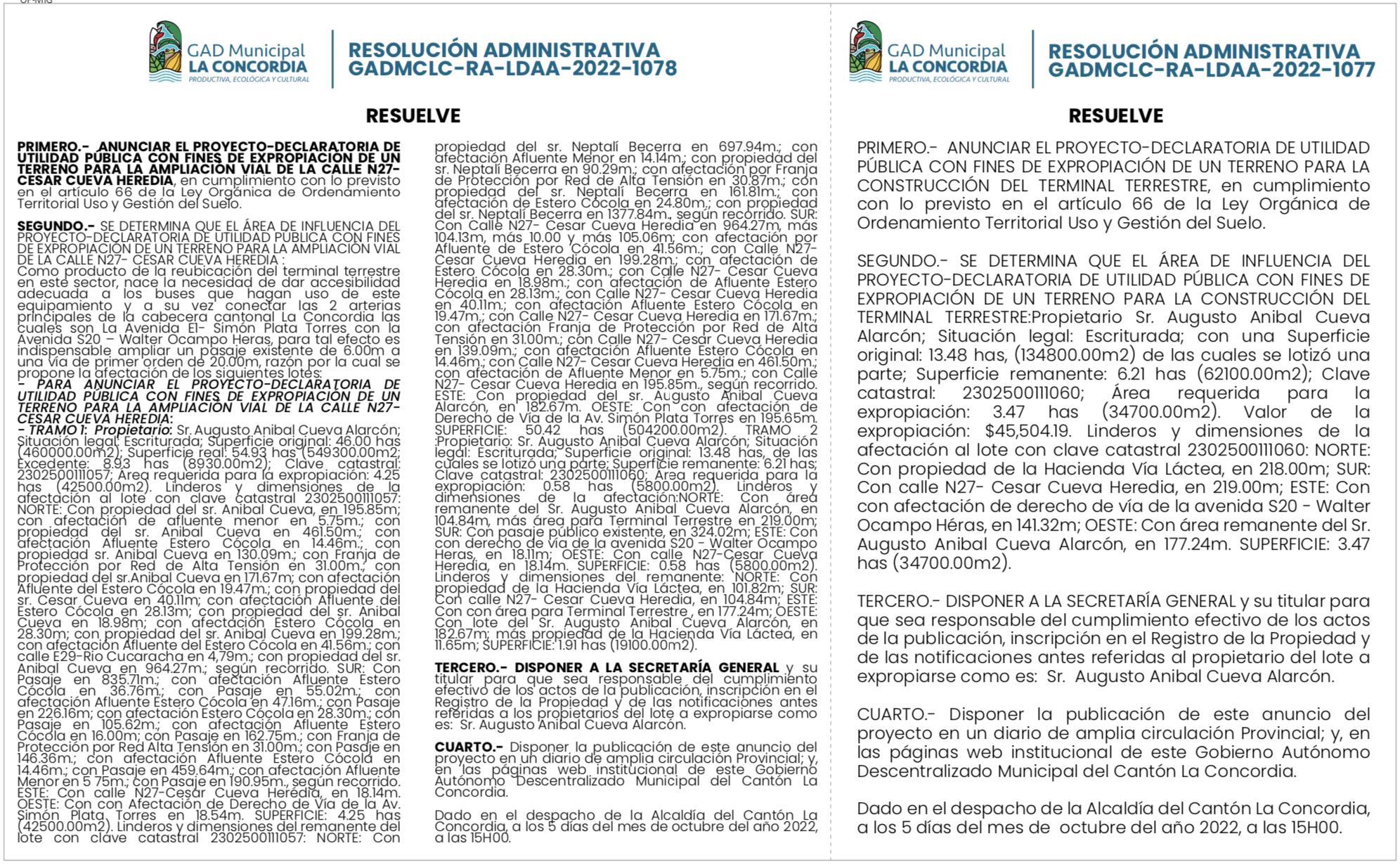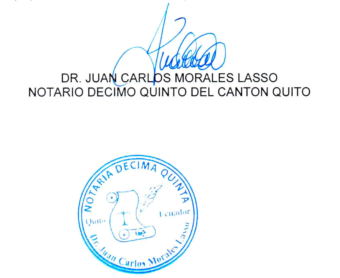 ESTACIO, otorgada mediante escritura pública antes indicada, por el término de veinte (20) días, a fn de que las personas que eventualmente tuvieren interés en esta liquidación puedan presentar su oposición fundamentada, dentro del referido término. Particular que pongo en conocimiento para los fnes legales correspondientes. Quito 6 de octubre del 2022