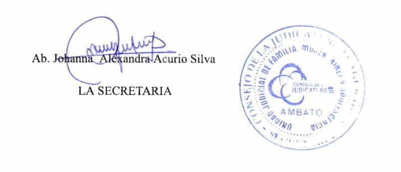 UNIDAD JUDICIAL DE FAMILIA, MUJER, NIÑEZ Y ADOLESCENCIA CON SEDE EN EL CANTÓN AMBATO. Ambato, jueves 17 de febrero del 2022, a las 13h19.