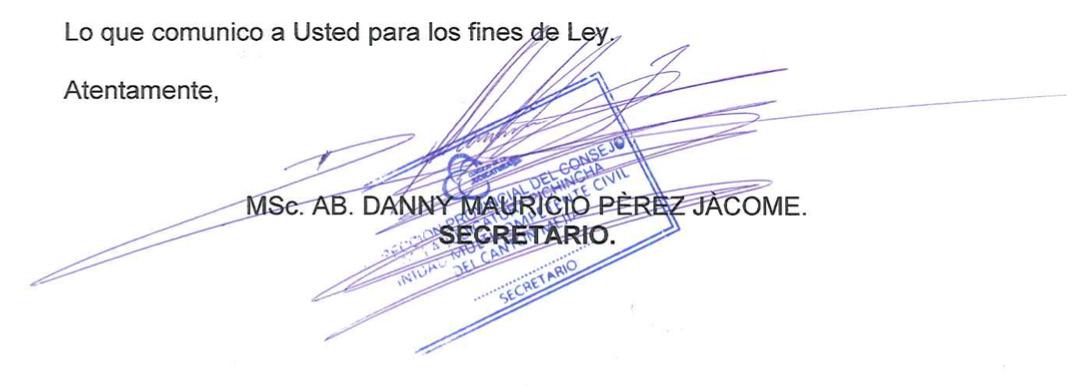 Particular que pongo en su conocimiento para los fines de ley, previniéndole de la obligación que tiene de señalar casillero judicial, casillero electrónico o correo electrónico para sus notificaciones.
