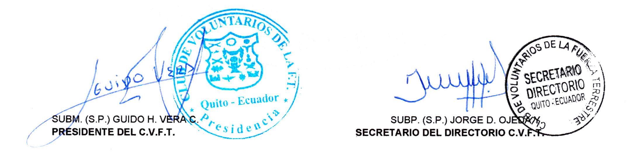 4. PALABRAS DE BIENVENIDA A CARGO DEL SEÑOR SUBM. (S.P.) GUIDO HERNÁN VERA CAMPELO, PRESIDENTE DEL C.V.F.T.