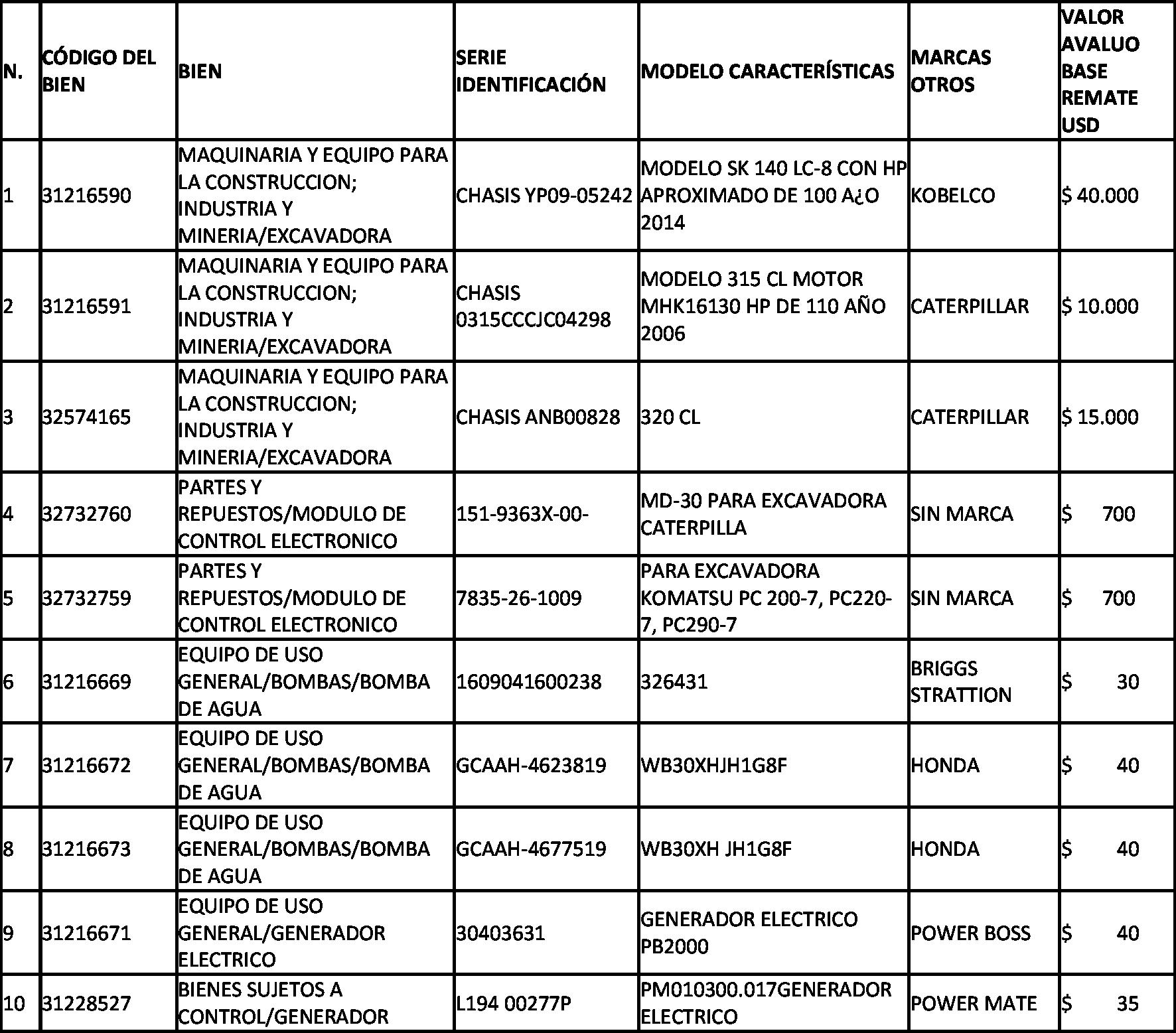 REMATE DE 10 BIENES DECOMISADOS DE PROPIEDAD DE LA AGENCIA DE REGULACIÓN Y CONTROL DE ENERGÍA Y RECURSOS NATURALES NO RENOVABLES