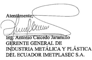 Se convoca con carácter de urgente y obligatorio a todos los accionistas de la INDUSTRIA METÁLICA Y PLÁSTICA DEL ECUADOR IMETPLASEC S.A. a la Junta General Extraordinaria de Accionistas a realizarse el día 18 de julio de 2024 a las 16H00 (4 de la tarde), en las oficinas ubicadas en la Panamericana Sur-Calle F-Kilómetro 14½, Barrio Manuelita Sáenz de esta ciudad, con el objeto de tratar el siguiente orden del día.