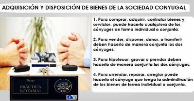 caso de querer que un bien sea de propiedad de los dos, necesariamente deberán concurrir a la compra los dos cónyuges o convivientes en unión de hecho. Disolución ante nota-