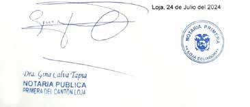 Doctora Gina Calva Tapia, Notaria Primera del cantón Loja me permito poner en conocimiento de la ciudadanía, conforme a ley: a) Que mediante escritura pública del veinticuatro de julio del dos mil veinticuatro, celebrada en la Notaría Primera del cantón Loja, se procedió a celebrar la escritura de LIQUIDACIÓN Y CANCELACIÓN VOLUNTARIA DE LA COMPAÑIA EN NOMBRE COLECTIVO ALVARADO ARMIJOS Y COMPAÑIA TAXI EJECUTIVO INMACULADA EN LIQUIDACION, la misma que fue constituida mediante escritura pública celebrada ante el Notario Quinto cantonal de Loja, Dr. Galo Castro Muñoz, con fecha cuatro de marzo del dos mil once, aprobada en sentencia por el señor Juez Quinto de lo Civil de Loja, dentro del proceso número ciento cincuenta y ocho guion dos mil once, de fecha seis de abril del dos mil once, e inscrita en el Registro Mercantil del cantón Loja, bajo la partida cuatrocientos seis, repertorio mil ciento veintinueve, de fecha diez de mayo del dos mil once; b) Que se ha presentado en la Notaría Primera del cantón Loja, la petición pertinente para la aprobación de la escritura de liquidación y cancelación de dicha compañía, en atención a la Disposición Reformatoria Décima Quinta, numeral ocho del Código Orgánico General de Procesos, que faculta a los señores Notarios “aprobar la constitución o reforma de sociedades civiles y mercantiles y demás actos atinentes con la vida de éstas y oficiar al Registrador Mercantil para su inscripción..”, y c) de conformidad con la Ley de Compañías, y de acuerdo al numeral 29 del art. 18 de la Ley Notarial, se pone en conocimiento de la ciudadanía para los fines legales pertinentes.